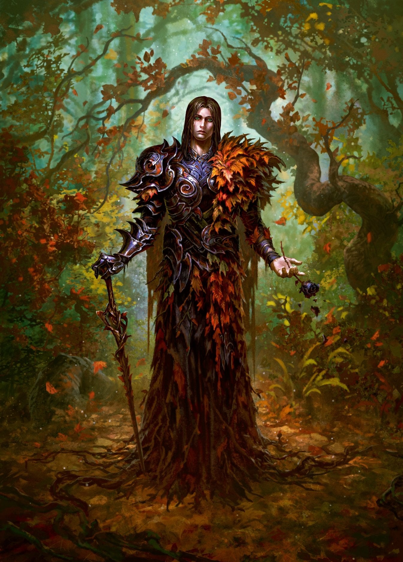 This is a set of 9 art cards that make up Florian, Rotwood Harbinger.