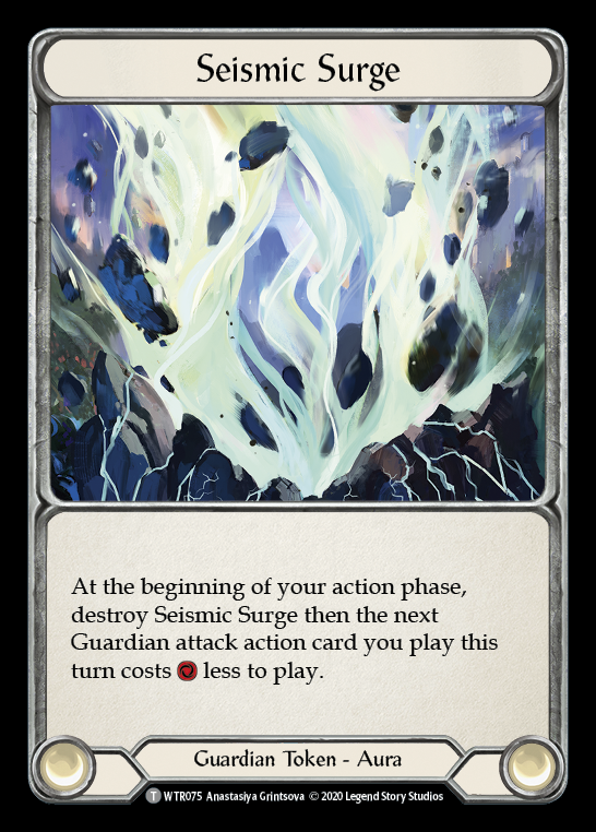 At the beginning of your action phase, destroy Seismic Surge then the next Guardian attack action card you play this turn costs [1 Resource] less to play.