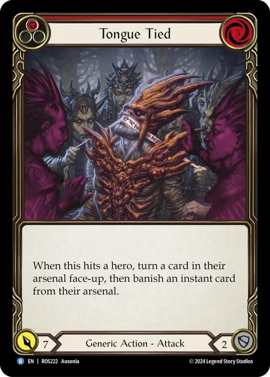 When this hits a hero, turn a card in their arsenal face-up, then banish an instant card from their arsenal.