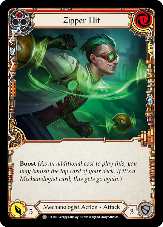 Boost (As an additional cost to play this, you may banish the top card of your deck. If it's a Mechanologist card, this gets go again.)